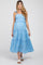 Blue Striped Smocked Shoulder Tie Maternity Midi Dress