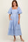 Blue Wavy Trim Puff Sleeve Midi Dress