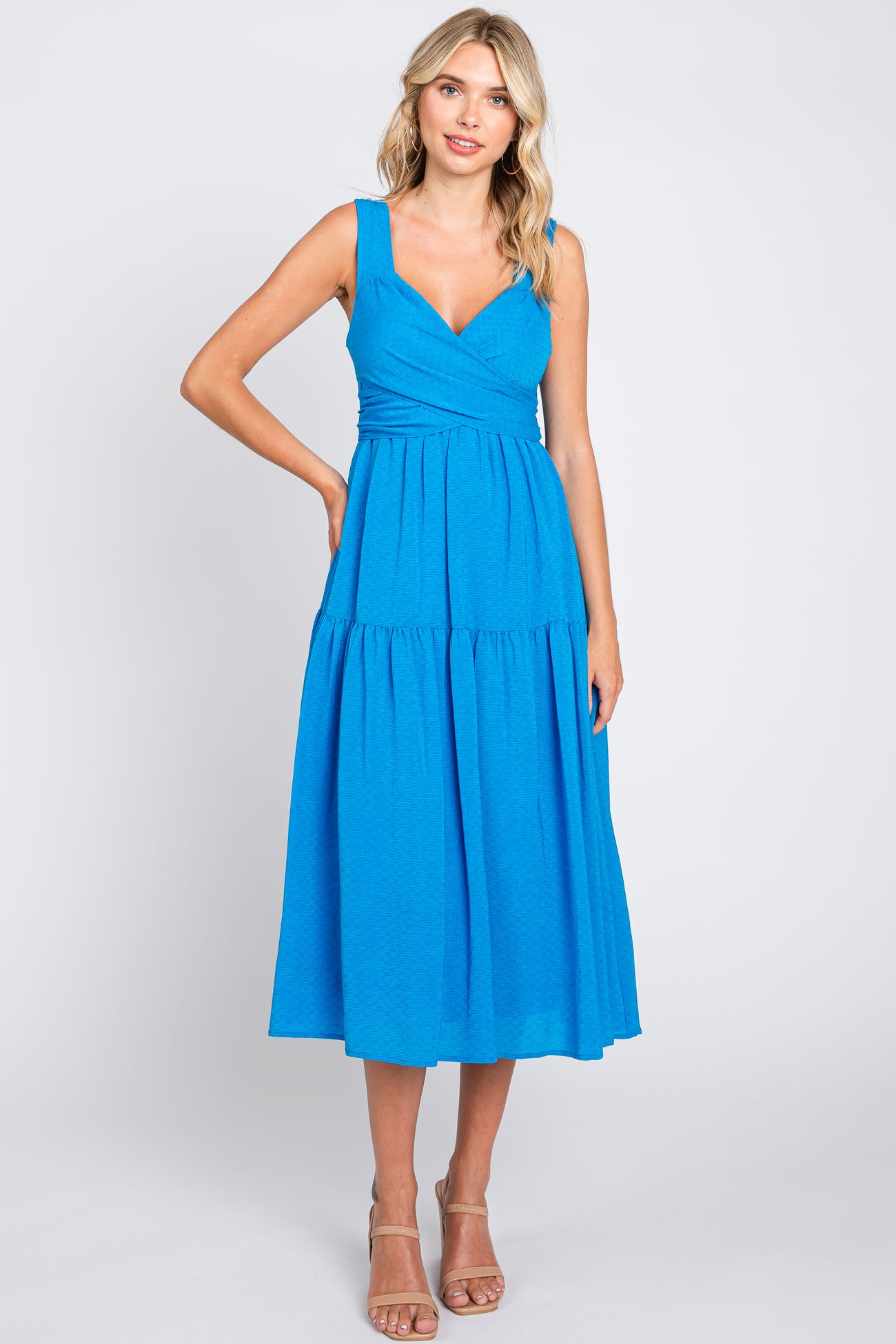 Blue Wrap Front Accent Midi Dress