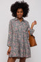 Brown Crinkled Velvet Button Down Shirt Dress