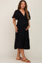 Brown Floral Button Front V-Neck Maternity Midi Dress