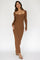 Brown Rib Knit Long Sleeve Maxi Dress