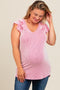 Brown Ribbed Knit Off Shoulder Side Slit Maternity Sweater Dress