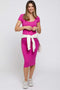 A solid ribbed maternity fitted midi dress with a square neckline.