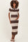 Brown Ribbed Striped Knit Polo Maternity Midi Dress