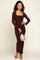 Brown Square Neck Fitted Long Sleeve Maxi Dress