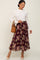 A floral print midi skirt that is fully pleated. Features an elastic waistband and lining for coverage.