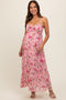 Burgundy Floral Long Sleeve Smocked Maternity Midi Dress