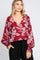 Burgundy Floral V-Neck Long Sleeve Blouse