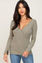 A heathered ribbed maternity set. Top features long sleeves and a rounded neckline. Fitted shorts.