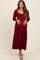 Burgundy Square Neck Long Sleeve Maternity Midi Dress