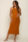 Camel Basic Ribbed Side Slit Maternity Midi Dress