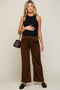 A corduroy, fleece lined shacket featuring long sleeves, a snap button down front, two front pockets with a snap button closure and a round hem.