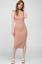 A solid, ribbed dress with flutter sleeves, a rounded neckline, and a side slit at the bottom hem.