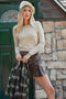 Camel Ruffle Collar Micro Waffle Knit Henley Top