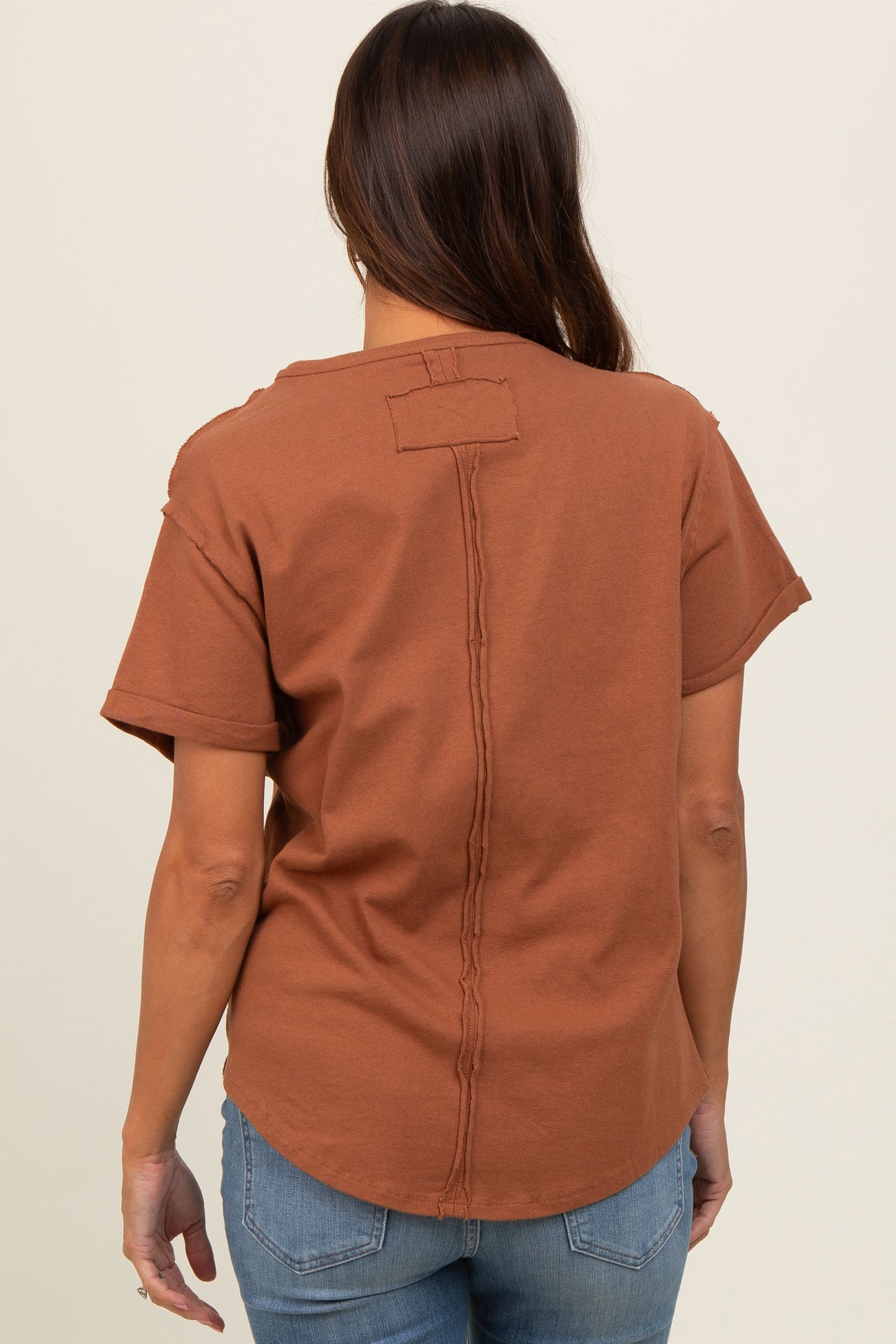 Camel Wrap Short Sleeve Raw Hem Maternity Top