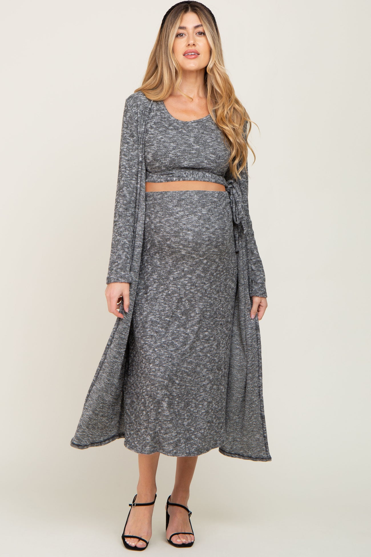 Charcoal 3-Piece Skirt and Cardigan Maternity Set