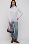 A soft chenille, open knit sweater. Features a ribbed rounded neckline, long sleeves, and a ribbed hem.