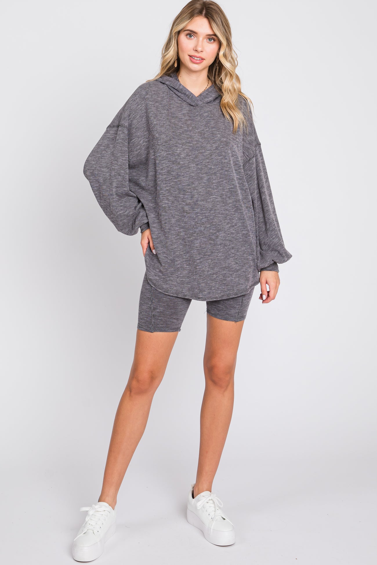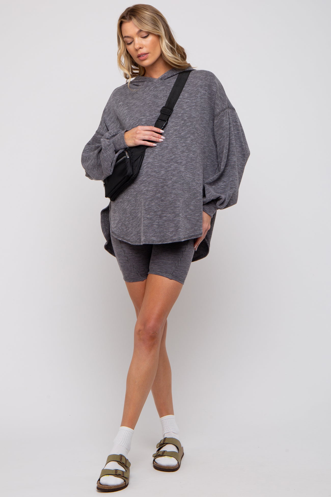 Charcoal Ribbed Maternity Hooded Biker Short Set