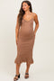 Charcoal Sleeveless Side Ruched Maternity Midi Dress