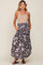 Charcoal Tropical Floral Smocked Waist Round Hem Maternity Midi Skirt