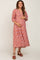 Coral Floral V-Neck Tiered Maternity Midi Dress