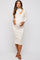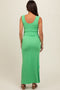 A solid ribbed knit maternity midi dress with a mock neck, cutout detail on chest and back slit.
