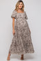 Cream Floral Puff Sleeve Maternity Midi Dress