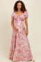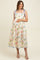 Cream Floral Shoulder Tie Scallop Trim Maternity Midi Dress