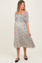 Cream Floral Smocked Puff Sleeve Midi Dress