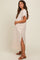 Cream Linen Fringe Accent Side Slit Maternity Midi Dress