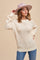 An open knit sweater with a rounded neckline and long raglan sleeves.