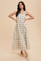 Cream Plaid Cutout Tie Back Maternity Maxi Dress