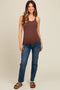 A ribbed fitted maternity top featuring long sleeves and a collared v-neckline.
