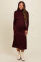 A solid ribbed long sleeve maternity top with exposed seam details and rounded hem.