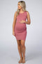 A soft ribbed maternity set. Top features short sleeves and rounded neckline. Fitted shorts.