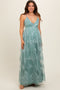 Cream Ribbon Strap Tiered Maternity Maxi Dress