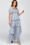 Cream Ruffle Accent Mesh Overlay Maternity Maxi Dress