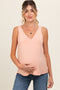 A solid maternity maxi dress with featuring a ruffle accent v-neckline, short puff sleeves, a front tie, a smocked waist, and side pockets. Dress is lined 2/3 of the way down.