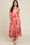 Cream Striped Cutout Cross Back Side Slit Midi Dress