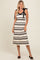 Cream Striped Shoulder Tie Side Slit Midi Dress