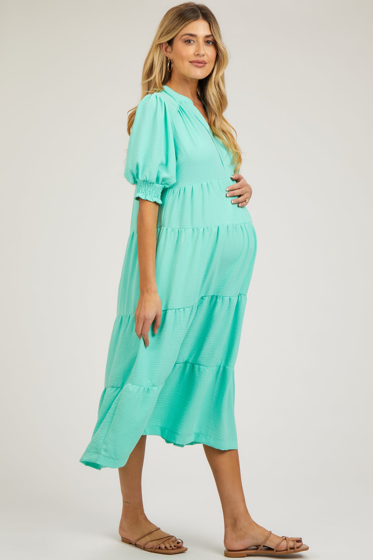 Emerald Short Sleeve Tiered Maternity Midi Dress