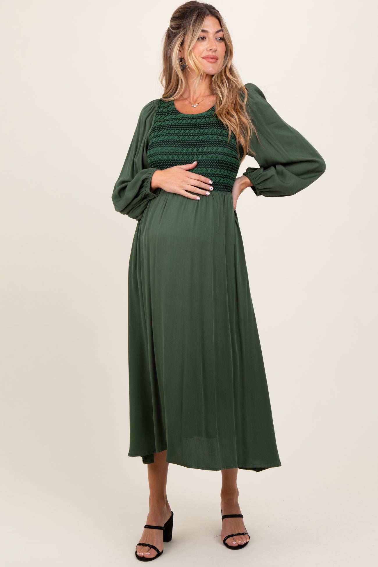 Forest Green Contrast Knit Bodice Maternity Maxi Dress