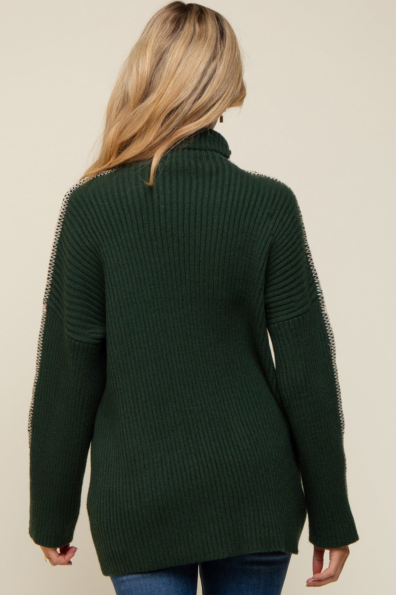 Forest Green Contrast Stitch Turtleneck Maternity Sweater