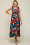 A plisse maternity midi dress featuring a halter neckline with a knot front, an open back and a side slit.
