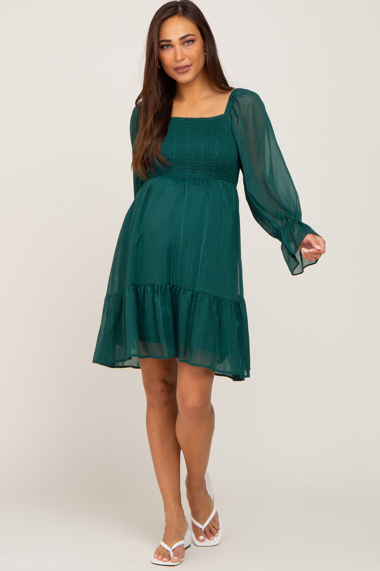 Forest Green Metallic Stripe Smocked Maternity Dress