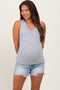 A lightweight maternity blouse featuring a collared neckline, short rolled sleeves, a button front and side slits.