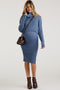A soft corduroy maternity dress featuring a button down front, 3/4 sleeves and a collared neckline.