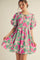 Fuchsia Floral Front Tie Puff Sleeve Dress