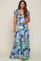 A linen maternity dress with short dolman sleeves, front functioning buttons, a collar, and side pockets.
